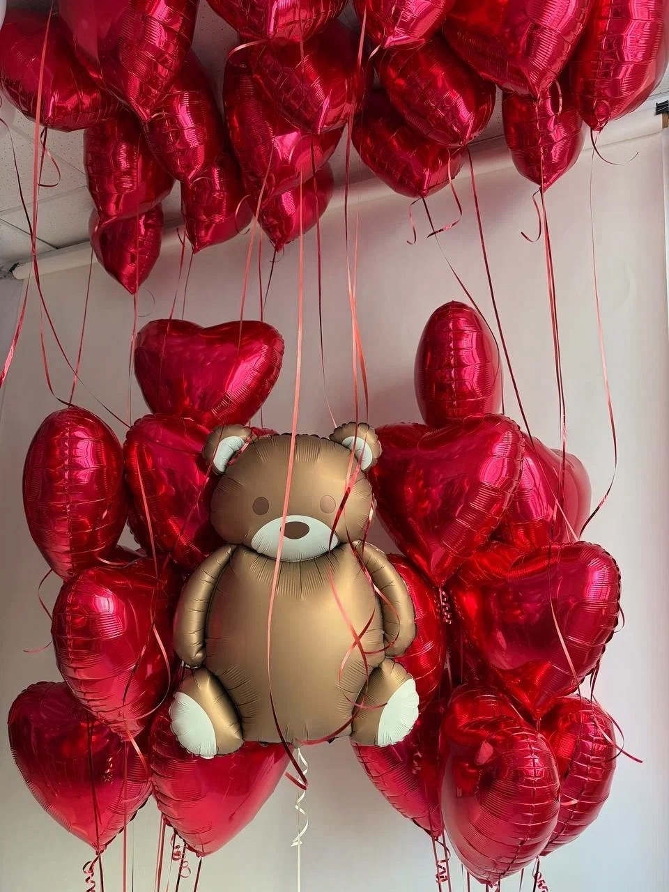 сердца 45см под потолок 20шт 2 фонтана по 10 сердец Мишка