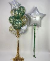 фонтан из 13 шариков: 3 с конфетти, 2 звезды, 8 шаров камуфляж звезда с индивидуальной надписью