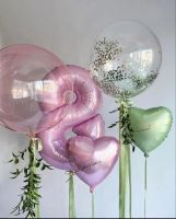 Состав: - цифра 102см (возможно изменение дизайна) - Шар баблс с конфетти прозрачный 60см - шар баблс розовый 60см - ветки зелени - ленты атлас - 2 сердца 45см с надписями Цветовая гамма может отличаться, зависит от цветокоррекции устройств