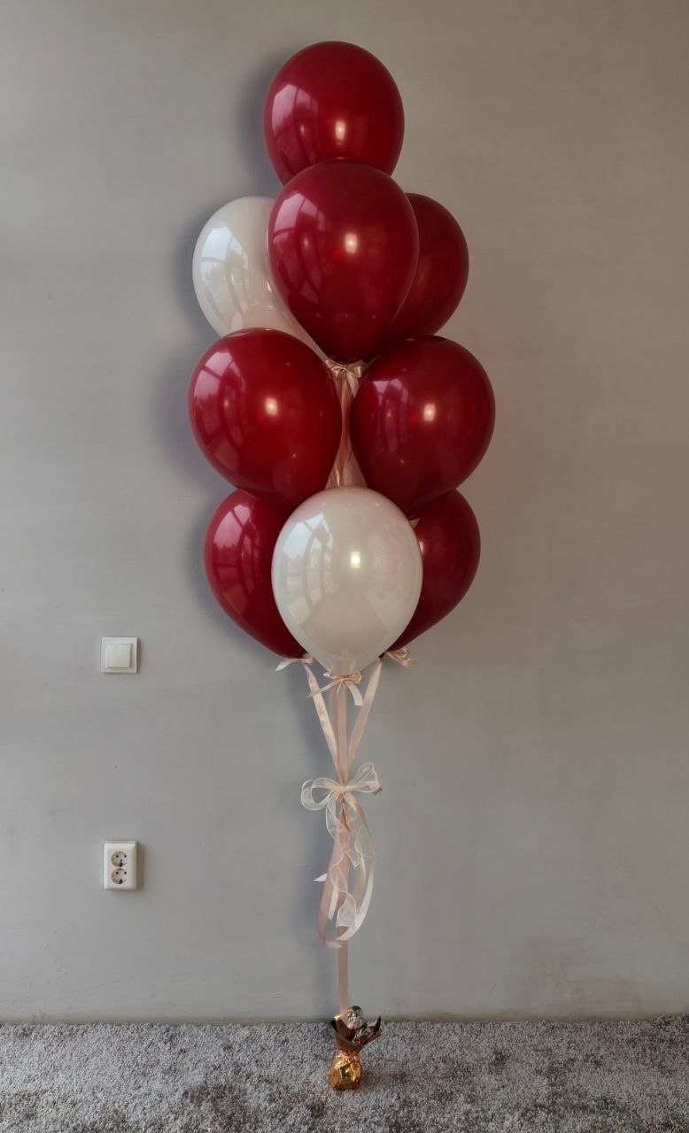 Состав: - Шар пастель красный Мерло, 7шт - Шар кристальный молочный, 3шт - ленты атласные