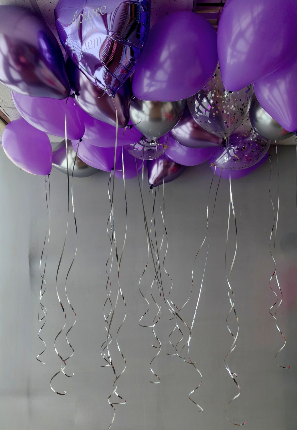4 сереневый хром 3 шара с конфети 3 серебро хром 10 фиолетовый пастель 1 сердце с индивидуальной надписью Оттенок может отличаться в реальности! Зависит от цветопередачи устройств!