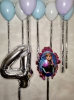 • Фигура Холодное сердце • Шары пастель: сиреневый 2шт, белый 2шт, голубой 3шт • Дождик серебро • Цтфра серебро 102см