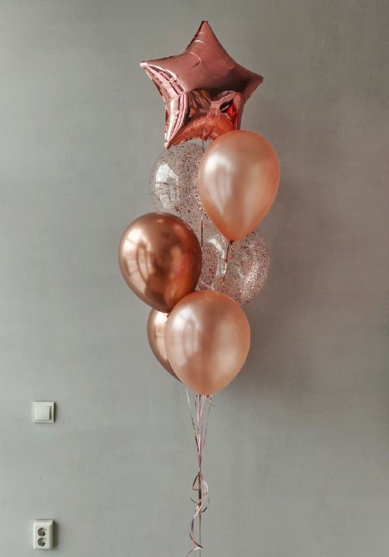 Фонтан из 7 шаров: 1 звезда, 2 хром, 2 металлик, 2 шара с конфетти (форма и размер конфетти может быть изменены)